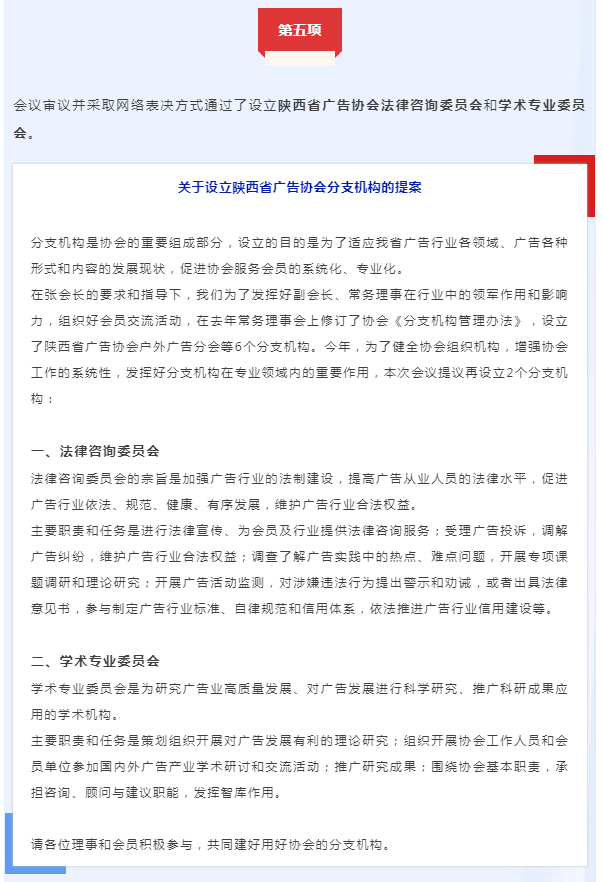 为拓展协会与会员联系沟通的渠道,广泛收集会员的意见建议,认真研究事关陕西广告业发展的重大问题,及时向有关部门、机构反映行业诉求,协会制定了《威尼斯集团vip5519提案工作实施办法》,请广大会员积极建言献策,共同为陕西广告业发展、构建良好的广告经营秩序出谋划策。