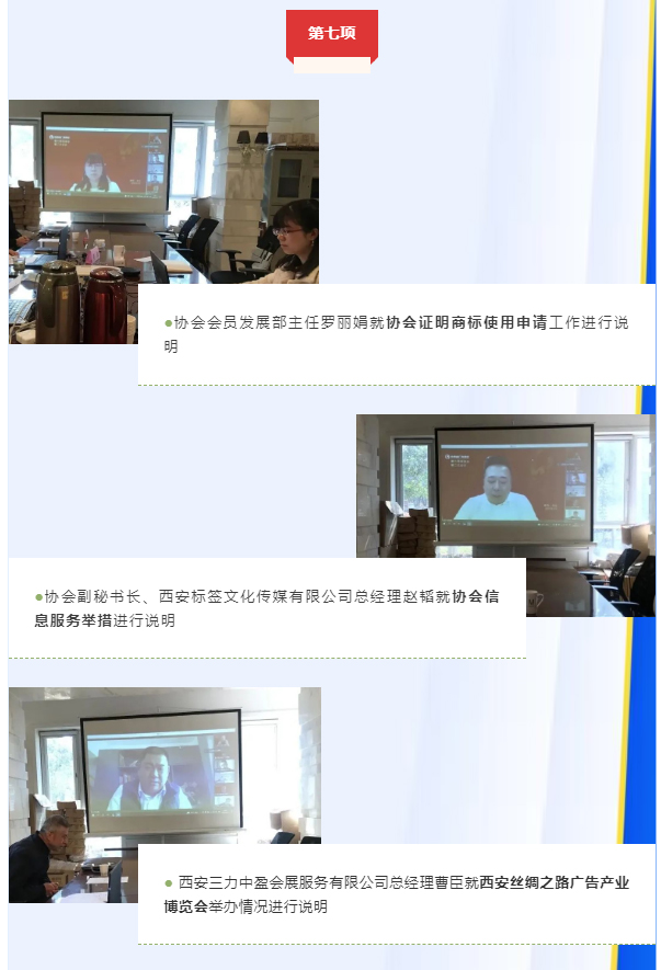 为增强我省广告企业专业服务质量和品牌竞争力,发挥好协会证明商标的作用,协会结合我省广告企业经营实际,修订完善了证明商标使用条件细则、使用审查工作办法,成立了新一届协会证明商标使用审查委员会(审查委员会主任由张会长担任,典汇传播唐会长、陕西新浪付会长担任副主任,陕西西影电影频道副总经理龙仪、陕西百川文化总经理张榕、西安倚天传媒总经理胡振民、陕西广电融媒体集团经营中心主任张蓉、陕西师范大学新闻与传播学院副教授屈雅利担任审查委员,陕西汉三宝广告董事长刘三宝和我担任监审委员)。协会申请取得了中国广告协会证明商标初审授权资格,于11月中旬召开了证明商标使用审查委员会会议,对宝鸡市华业公交广告申请使用中国二级广告企业证明商标进行了初审,对陕西典汇传播、陕西新浪、陕西省交通广告、陕西百川文化、榆林市金马广告、杨凌金桥广告、铜川市立新广告、宝鸡市新城文化等8家单位申请使用陕西广告企业证明商标进行审查认定。