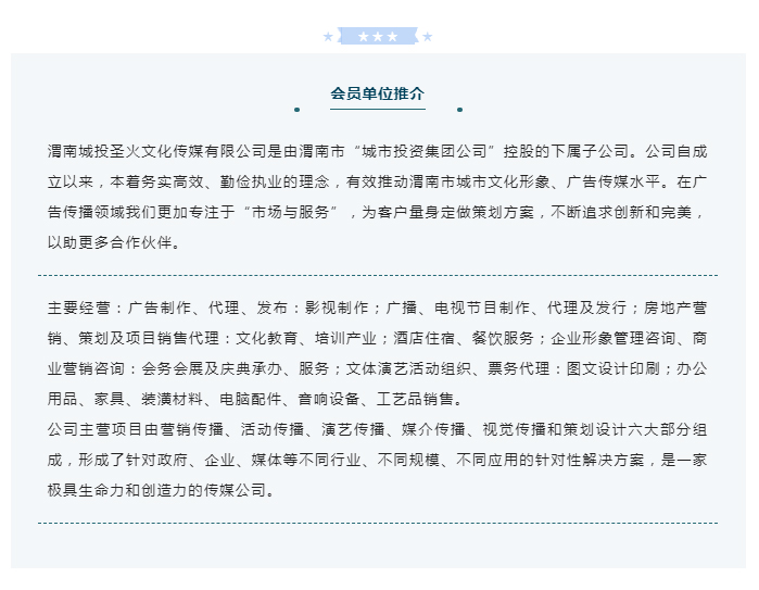 会员走访 | 渭南城投圣火文化传媒有限公司