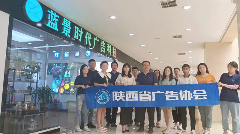 协会会员发展部主任罗丽娟、办公室主任陈梓棋与常务理事单位西安三力中盈会展服务有限公司、理事单位陕西鑫汇通广告有限责任公司、陕西西部新传媒有限公司、西安海西广告有限公司代表,走访西安蓝景时代广告科技有限公司。
