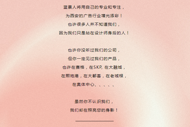 西安蓝景时代广告科技有限公司是一个专注于广告智品设计、研发和生产的高新企业。