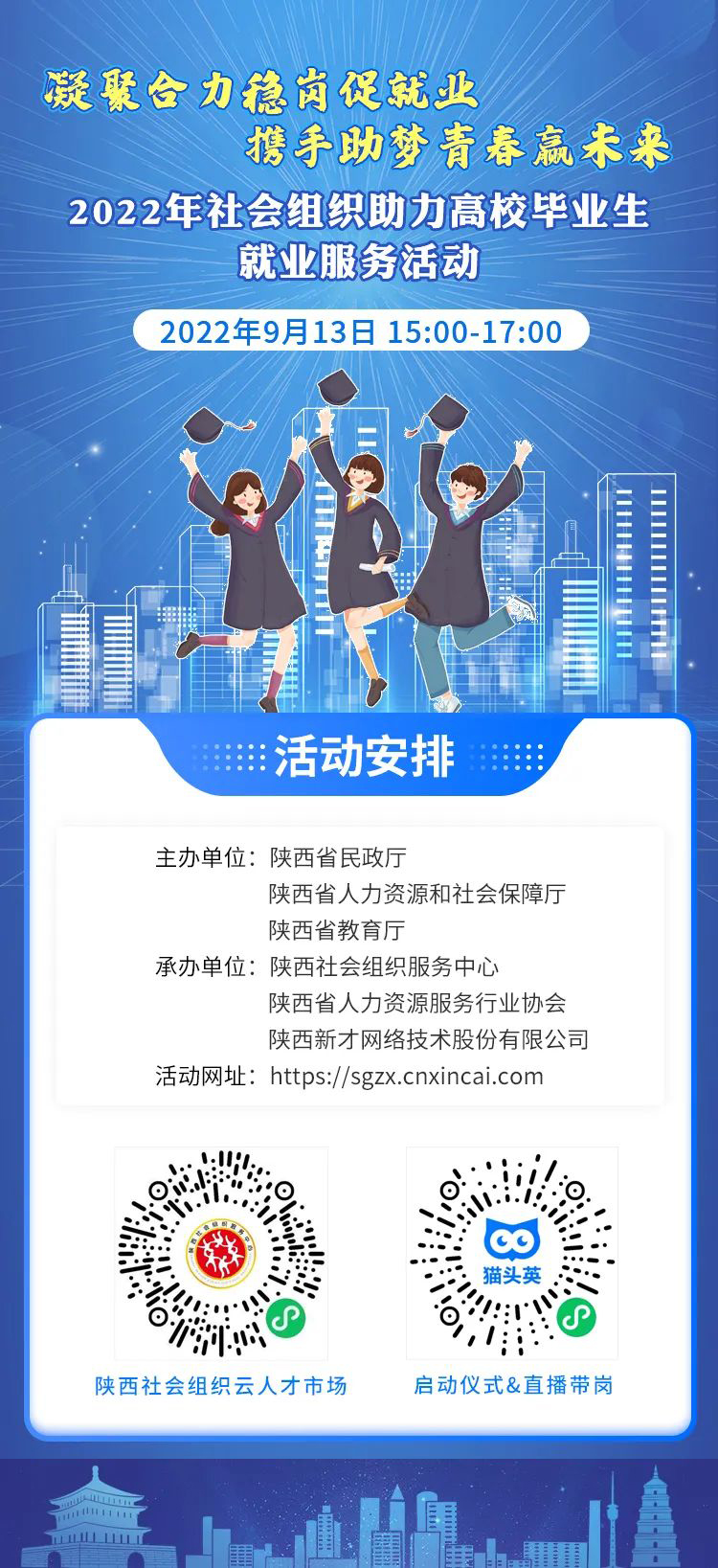 活动以“凝聚合力稳岗促就业,携手助梦青春赢未来”为主题,通过网络招聘会和直播带岗的形式,发挥社会组织及会员企业优势,创新就业形式,为高校毕业生拓展就业空间、拓宽就业岗位。