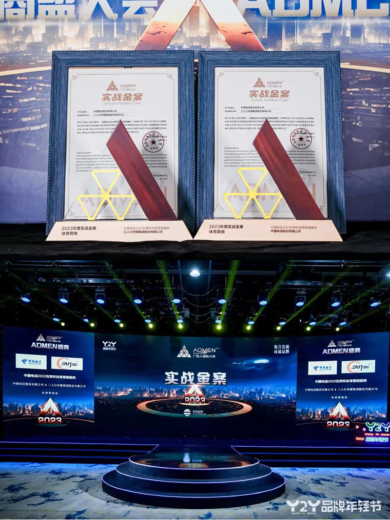三人行传媒集团与中国电信联合选送的《中国电信2022世界杯体育营销案例》荣获“2023ADMEN国际大奖——体育营销类实战金案”