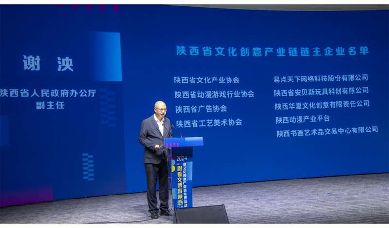 为进一步推动中华优秀传统文化创造性转化、创新性发展,扎实推进文化创意产业链建设,丰富文旅消费市场供给,9月29日,由省文化和旅游厅、宝鸡市人民政府主办的“跟着文博游陕西”暨文化创意产业链推进活动在宝鸡市举行。省政府副省长徐明非出席活动并讲话,省政府办公厅副主任谢泱出席活动并公布文化创意产业链链主企业名单,省委宣传部一级巡视员雎励军出席活动,省文化和旅游厅党组成员、副厅长杜金根出席活动并通报全省文化创意产业链发展情况,省商务厅二级巡视员黄绪林出席活动并发布“文化出海”相关政策措施,宝鸡市人民政府市长王勇出席活动并致辞。省广告协会作为省文化创意产业链链主单位参加了本次活动。