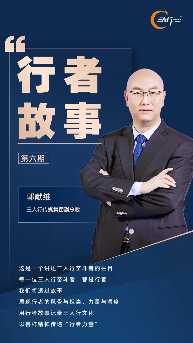 郭献维:三人行传媒集团副总裁,西北区负责人。2009年4月加入公司,13年来,他一步步见证并参与三人行发展壮大,今天,我们将他在三人行的故事分享给你。