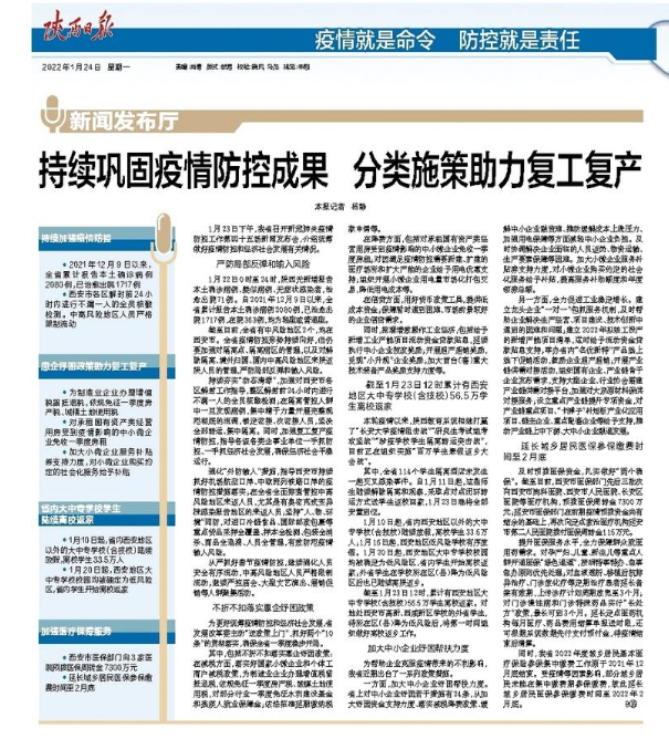 本轮疫情以来,陕西教育系统相继打赢了“长安大学疫情阻击战”“研究生考试组考攻坚战”“涉疫学校学生隔离转运突击战”,目前正在组织实施“百万学生寒假返乡大会战”。