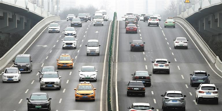 2月16日,车水马龙的西安市二环南路东段。 记者 肖晓良摄