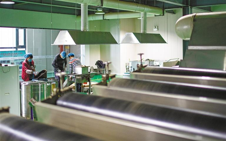 工人在裕兴重茯茶公司生产车间里忙碌着。这家坚持古法手工制茶的茯茶企业,如今每年能产出200吨高品质茯茶。记者 赵晨摄