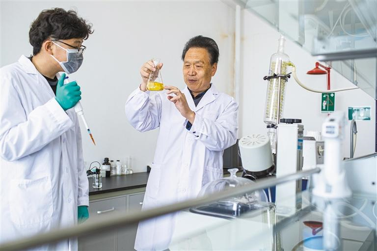 3月23日,西北农林科技大学园艺学院茶学教授肖斌(右)指导学生进行实验。记者 赵晨摄