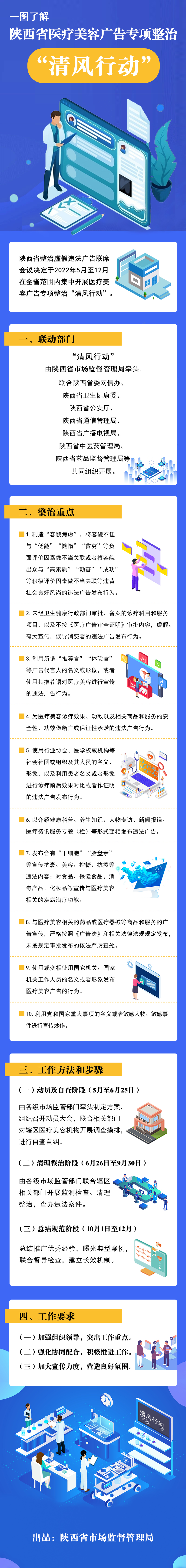 近日,陕西省整治虚假违法广告联席会议联络办公室印发《医疗美容广告专项整治“清风行动”工作方案》,从今年5月至12月,在全省集中开展“清风行动”,依法依规专项整治医疗美容广告乱象。