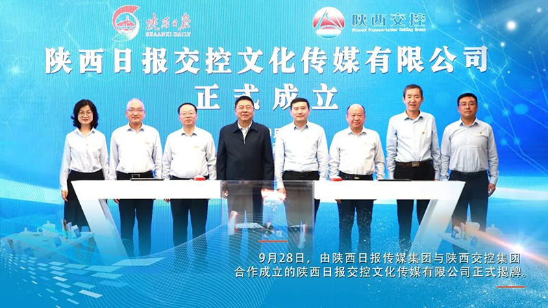 9月28日,由陕西交控集团和陕西日报传媒集团合资成立的陕西日报交控文化传媒有限公司在西安揭牌成立。陕西交控集团党委书记、董事长张文琪,陕西日报社社长、陕西日报传媒集团党委书记、董事长李伟共同为新公司揭牌。陕西交控集团副总经理郭利平,陕西日报社副社长、陕西日报传媒集团总经理康爱军分别致辞。