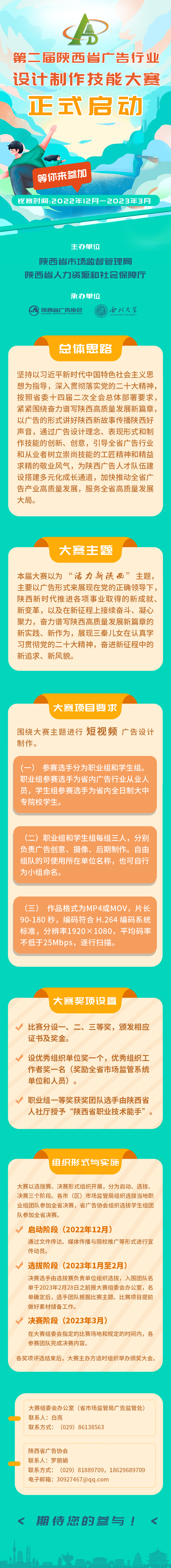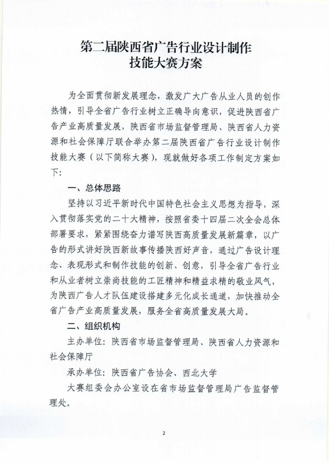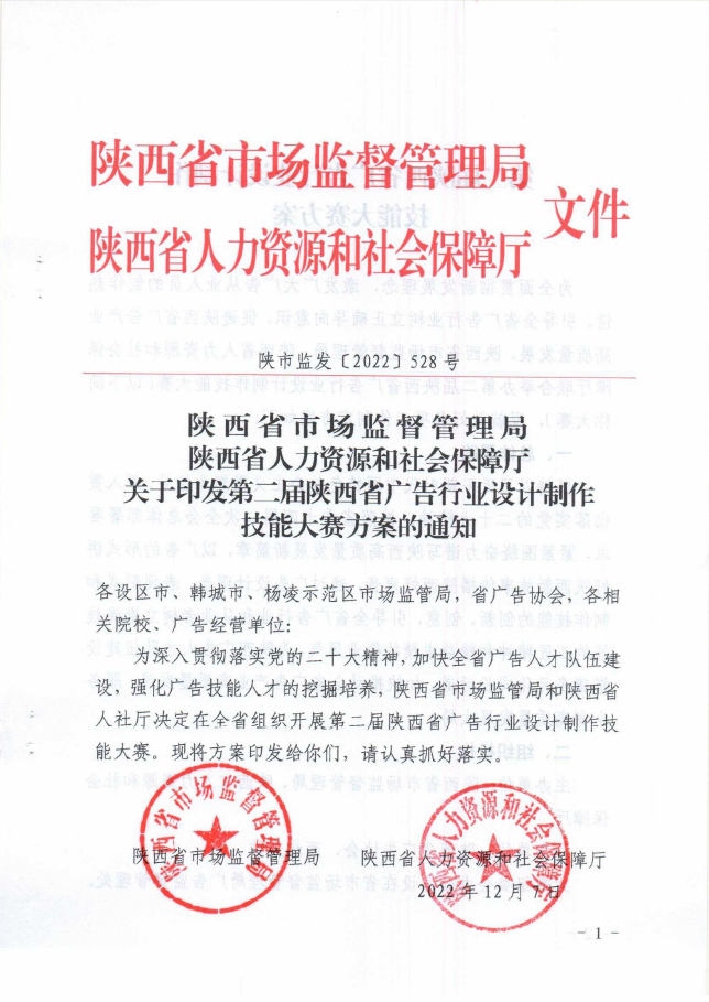 12月7日,陕西省市场监督管理局、陕西省人力资源和社会保障厅联合印发第二届陕西省广告行业设计制作技能大赛方案,标志本届大赛已正式启动。