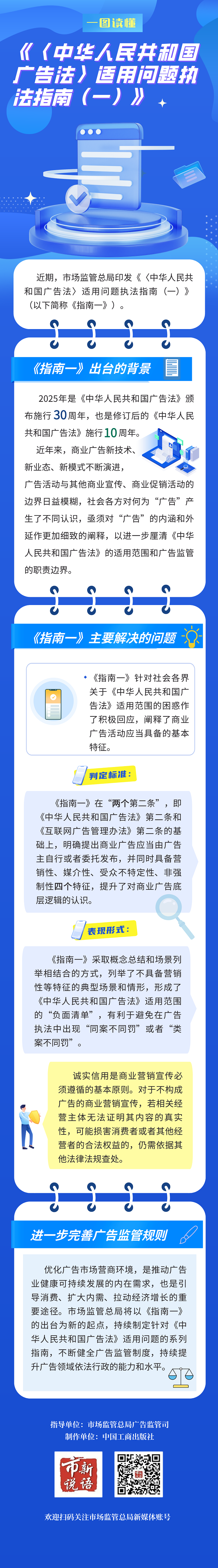 市场监管总局印发《〈中华人民共和国广告法〉适用问题执法指南(一)》