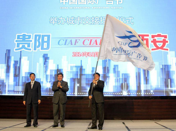 西安市政府陈松林副秘书长接过广告节旗帜Fragment--> 长城奖颁奖盛典