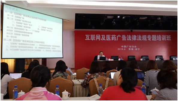 2016年8月25—26日,中国广告协会在青海省西宁市成功举办互联网及医药广告法律法规专题培训班。
