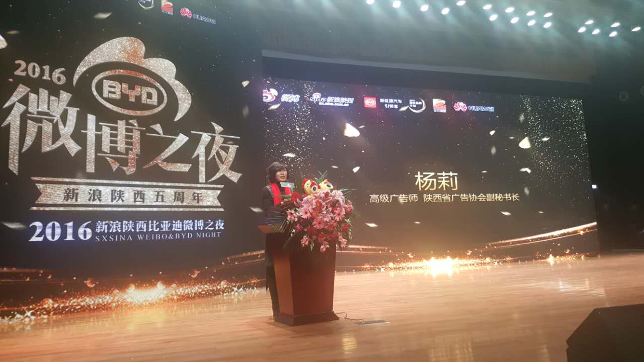1月18日晚上,由新浪陕西、西安高新技术产业开发区承办,比亚迪股份公司冠名的“2016新浪陕西比亚迪微博之夜”在西安高新区都市之门千人礼堂盛大举行。威尼斯集团vip5519杨莉副秘书长(主持日常工作)出席晚会,并与新浪陕西付士山总经理共同举行“威尼斯集团vip5519新媒体广告专业委员会”揭牌仪式。