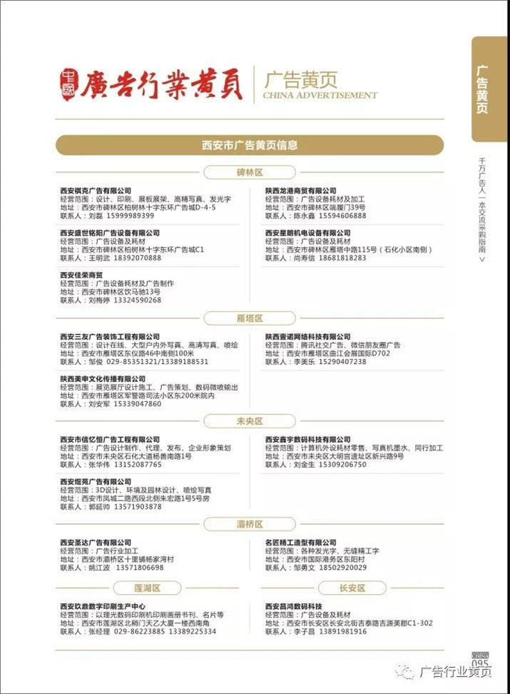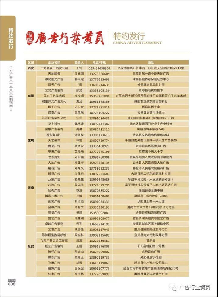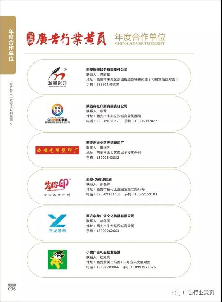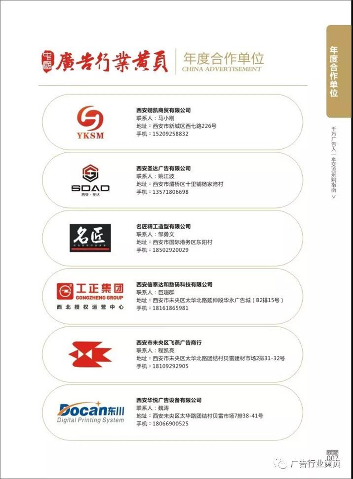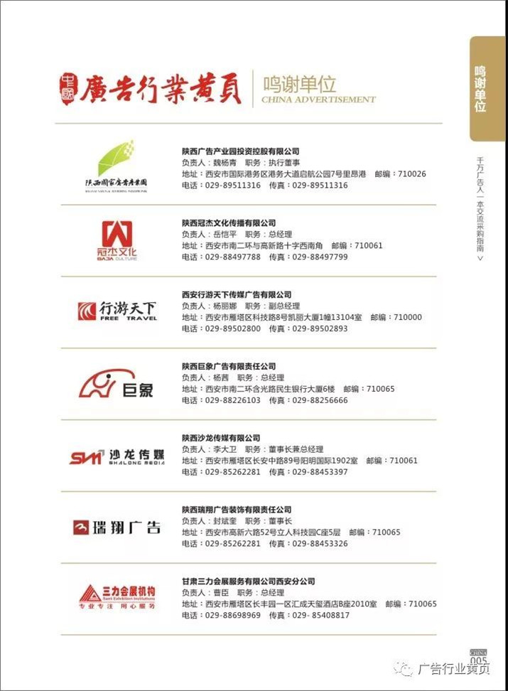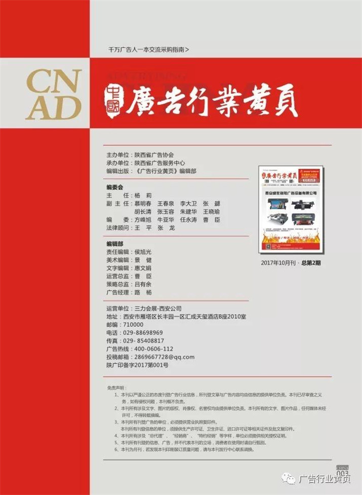 《广告行业黄页》是由威尼斯集团vip5519主办,由陕西省广告服务中心承办,三力会展-西安公司运营的一本集品牌塑造、企业推广、信息发布、资源整合、行业交流及采购为一体的广告行业专业期刊。