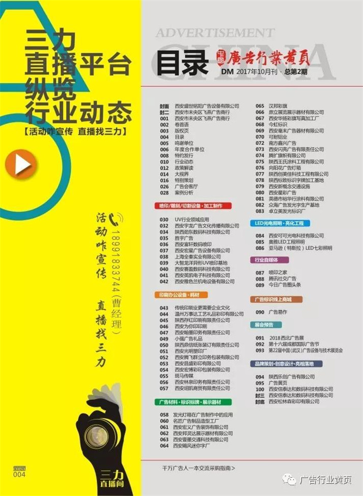 《广告行业黄页》致力于打造专业广告行业期刊,欢迎广告人投稿、刊登广告信息,我们愿与您携手共进,合作共赢!