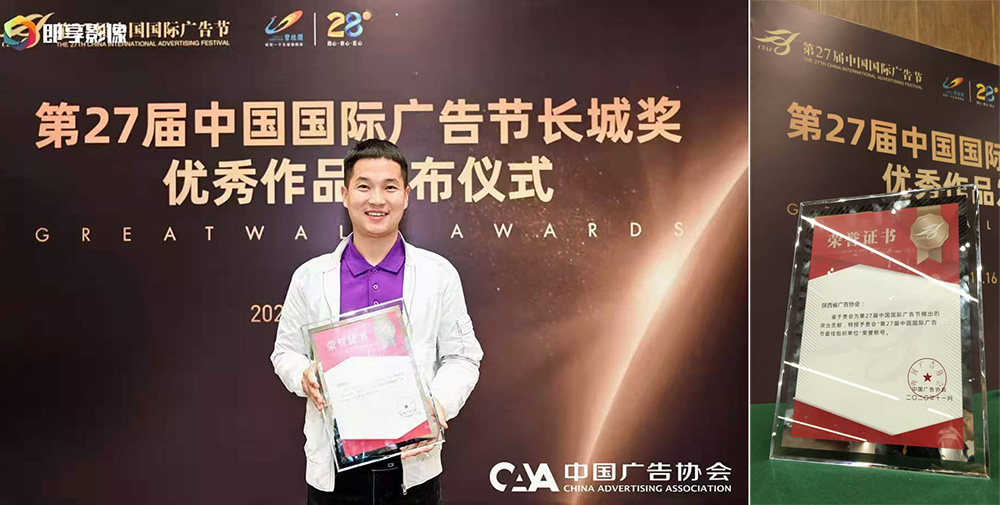 陕西广播电视台秦腔广播音频类作品《被需要是一种幸福》《妈妈,请对自己好一点》《他*的迷惑逻辑系列》《请抬头看看身边的美》《换个角度想想》,陕西营火虫品牌营销策划有限公司平面类作品《保护野生动物,守护共同家园》,西安九里观广告文化传播有限公司平面类作品《迷途篇》《隐患篇》等获本年度黄河奖优秀奖。