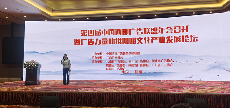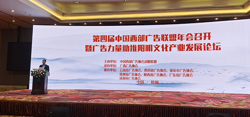 2020年12月14日,第四届中国西部广告协会战略联盟年会暨广告力量助推阳明文化产业发展论坛在广西壮族自治区梧州市召开。会议由广西广告协会承办,广西壮族自治区市场监督管理局广告监管处二级调研员王洪俊到会指导,广东、重庆、贵州、云南、陕西等省(市)广告协会,梧州市产业投资发展集团,各省(自治区、直辖市)广告企业代表出席。