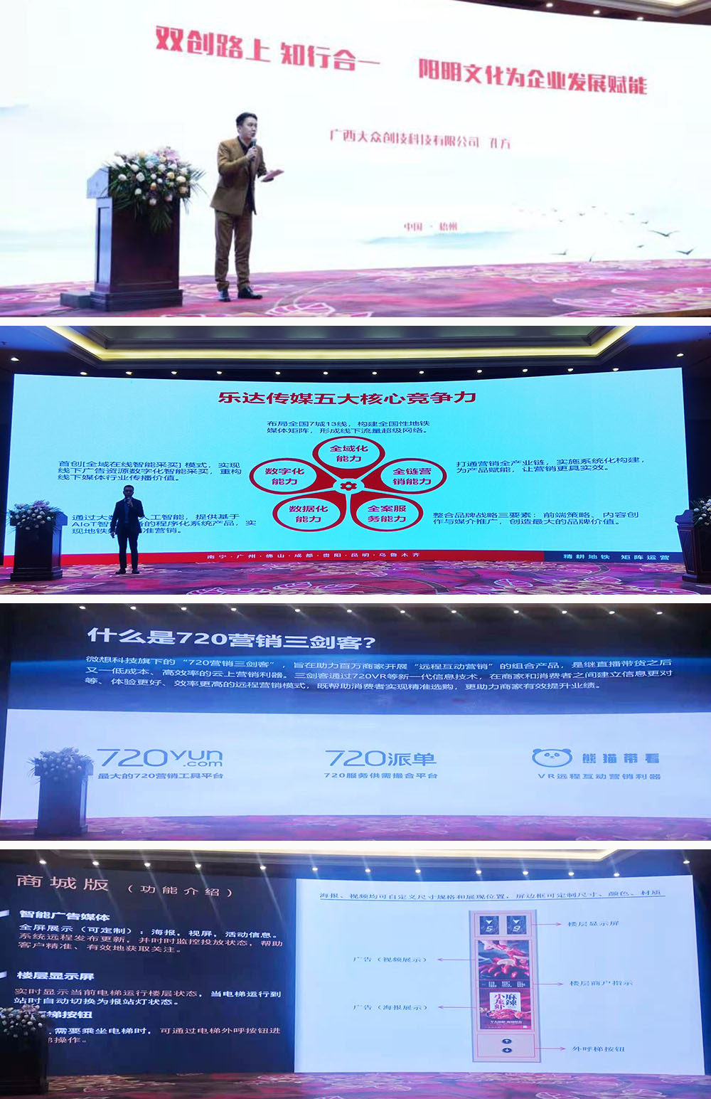 12月14日下午,与会人员分别交流了协会工作情况,围绕广告力量如何助推阳明文化产业发展讨论发言,对梧州阳明文化产业项目—梧州“三总府”的宣传、运营出谋献策,提出了很多创新的思路、鲜活的理念、时尚的元素,得到了项目建设运营机构的高度认可。梧州市产业投资发展集团有限公司董事长廖传盛表示,梧州的“三总府”建设项目将于2021年峻工,希望广大的广告界、媒体界朋友莅临梧州,为阳明文化的传播打call,力争使梧州“三总府”成为广西乃至中国阳明文化网红打卡盛地。广西大众创技、广西乐达传媒、昆明微想科技、贵州梯外传媒等广告企业在年会上进行了项目推介。