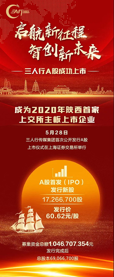 三人行传媒集团于2020年5月28日成功登陆上交所主板,
