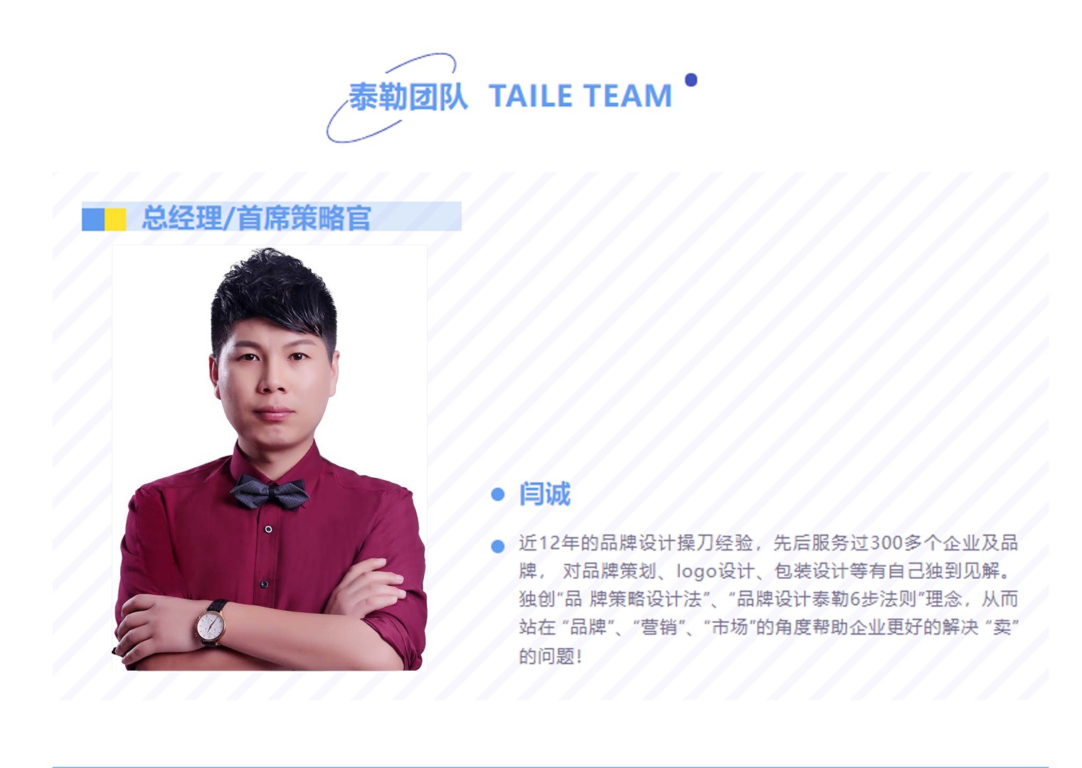 泰勒是集品牌策划、品牌设计、广告制作为一体的策略化设计集团公司,先后服务过500多家企业及品牌,像中国移动、陕定农、逛集电商等;泰勒区别于市场上95%的品牌设计公司,他们更注重于传统的以审美为导向的 广告设计,而泰勒是站在品牌、传播、营销的角度,运用泰勒超级策略帮助企业更好的解决”卖”以及品牌发展的问题,期待与您共创美好未来 !