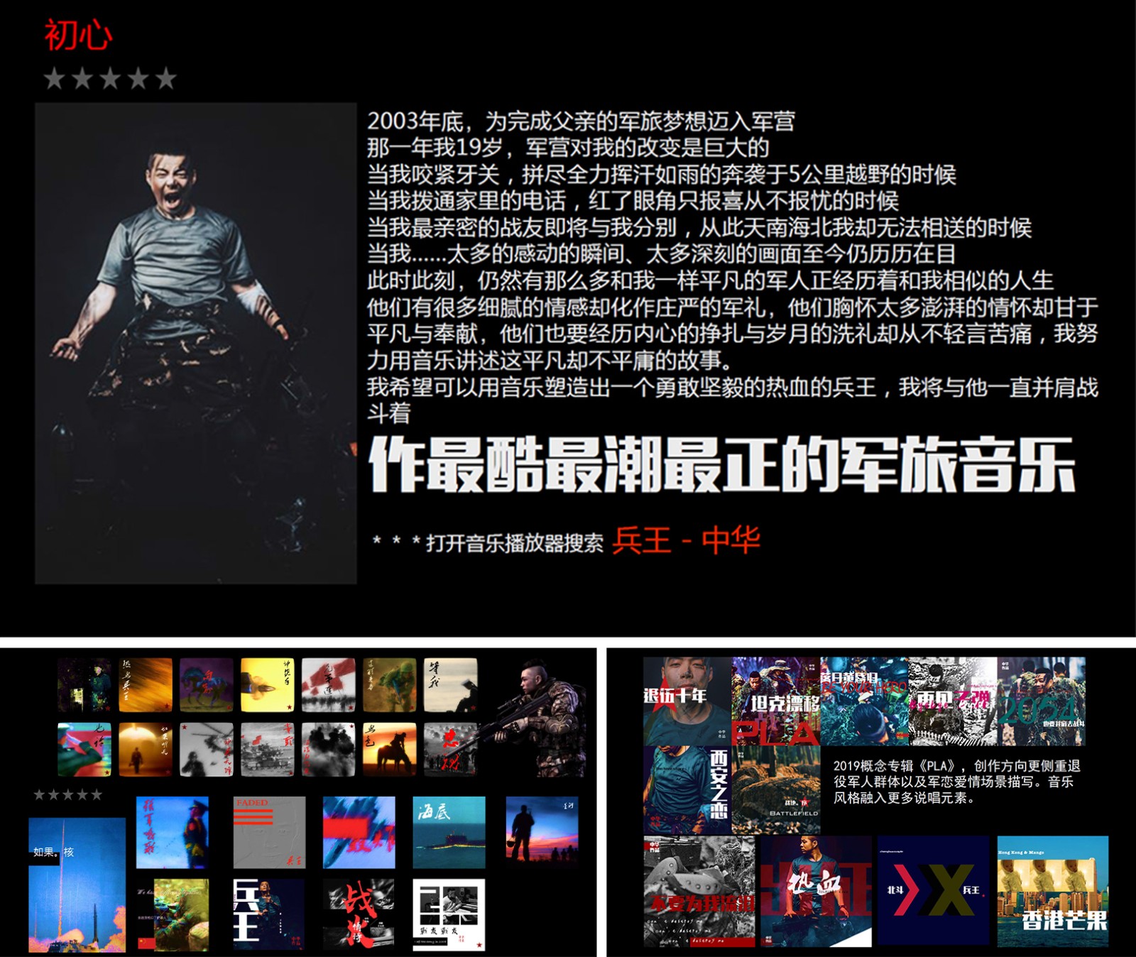 首款大型军事游戏《光荣使命》线上代言人,从军5年退伍后进修于中央音乐学院,具备独立作词、作曲、编曲、演唱、影视作品创作导演能力,2011年在西安创立“自由阵地”音乐工作室,陆续创作《热血兵王》《世界》《PLA》《热血出征》等军旅音乐专辑。中华将军旅音乐元素与流行曲风相融合,曲风多变,风格新颖,独树一帜,充满正能量,深得军营官兵和广大网友青睐并传唱。