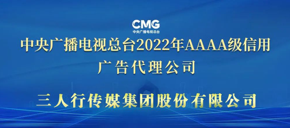 热烈祝贺三人行传媒集团荣获中央广播电视总台2022年4A级广告代理公司称号