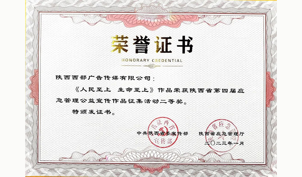 西部传媒荣获陕西省第四届应急管理公益宣传作品征集活动二等奖