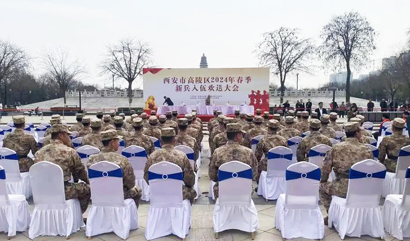 高陵区2024年度春季新兵入伍暨役前教育活动在高陵区昭慧广场顺利举行。交通传媒公司结合筹办大型活动的丰富经验,通过积极对接主办方,深度打磨现场布置细节、优化展板宣传主题、明确各环节责任划分,高质高效的完成了确定的策划设计方案、仪式流程、配套物料等多项内容,得到主办方的充分肯定。