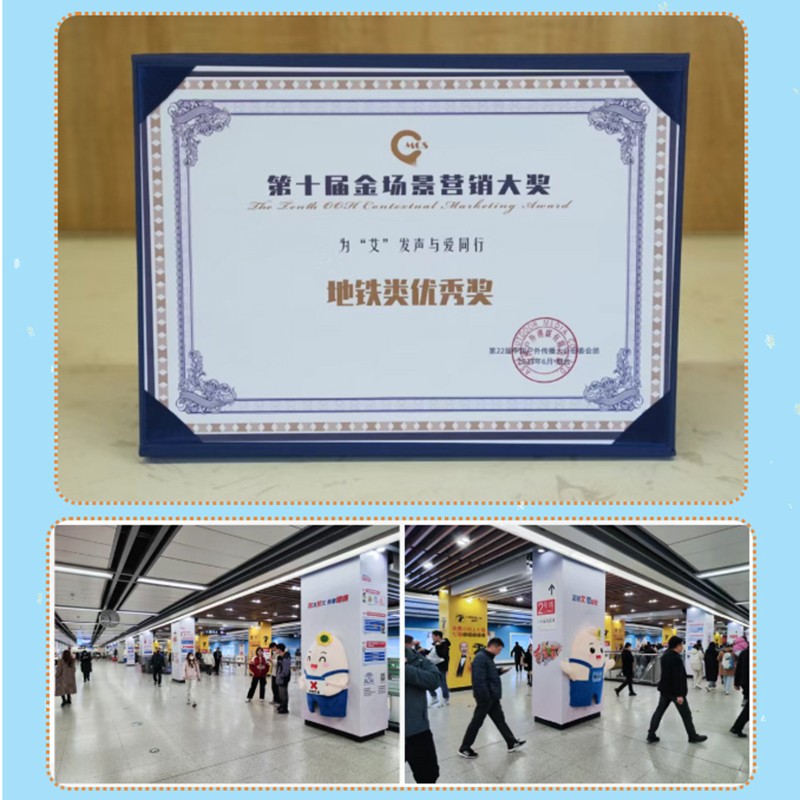【与明星合拍来冰爽一下】案例及【 为“艾” 发声 与爱同行】案例,分别斩获第十届金场景营销【地铁类铜奖】、【地铁类优秀奖】两项荣誉。
