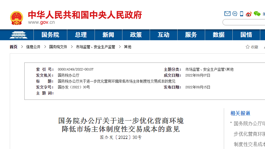 降低市场主体制度性交易成本的意见