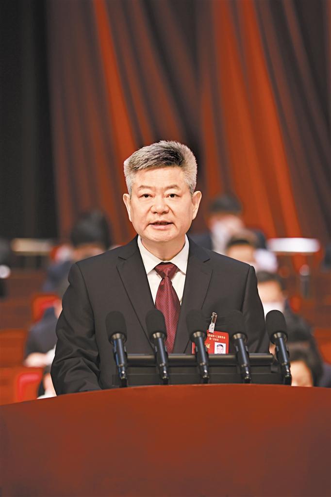 徐新荣代表政协陕西省第十二届委员会常务委员会,向大会作过去五年工作报告。