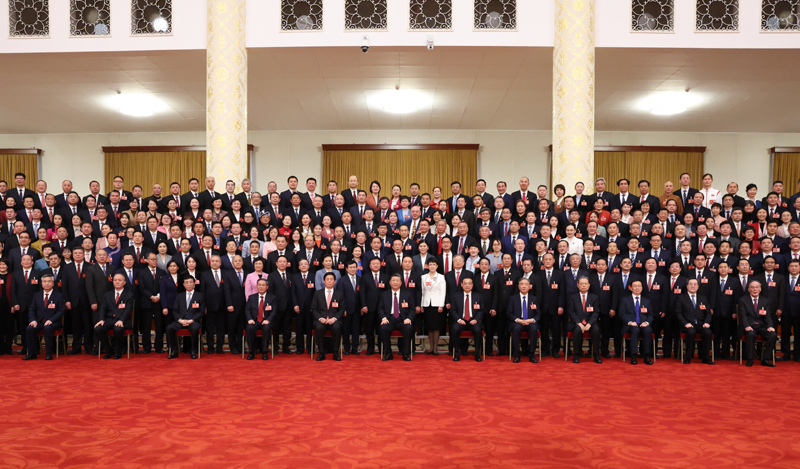 3月13日,第十四届全国人民代表大会第一次会议在北京人民大会堂闭幕。当日下午,习近平等党和国家领导人在人民大会堂会见出席十四届全国人大一次会议的全体代表,同他们合影留念。新华社记者 丁林 摄